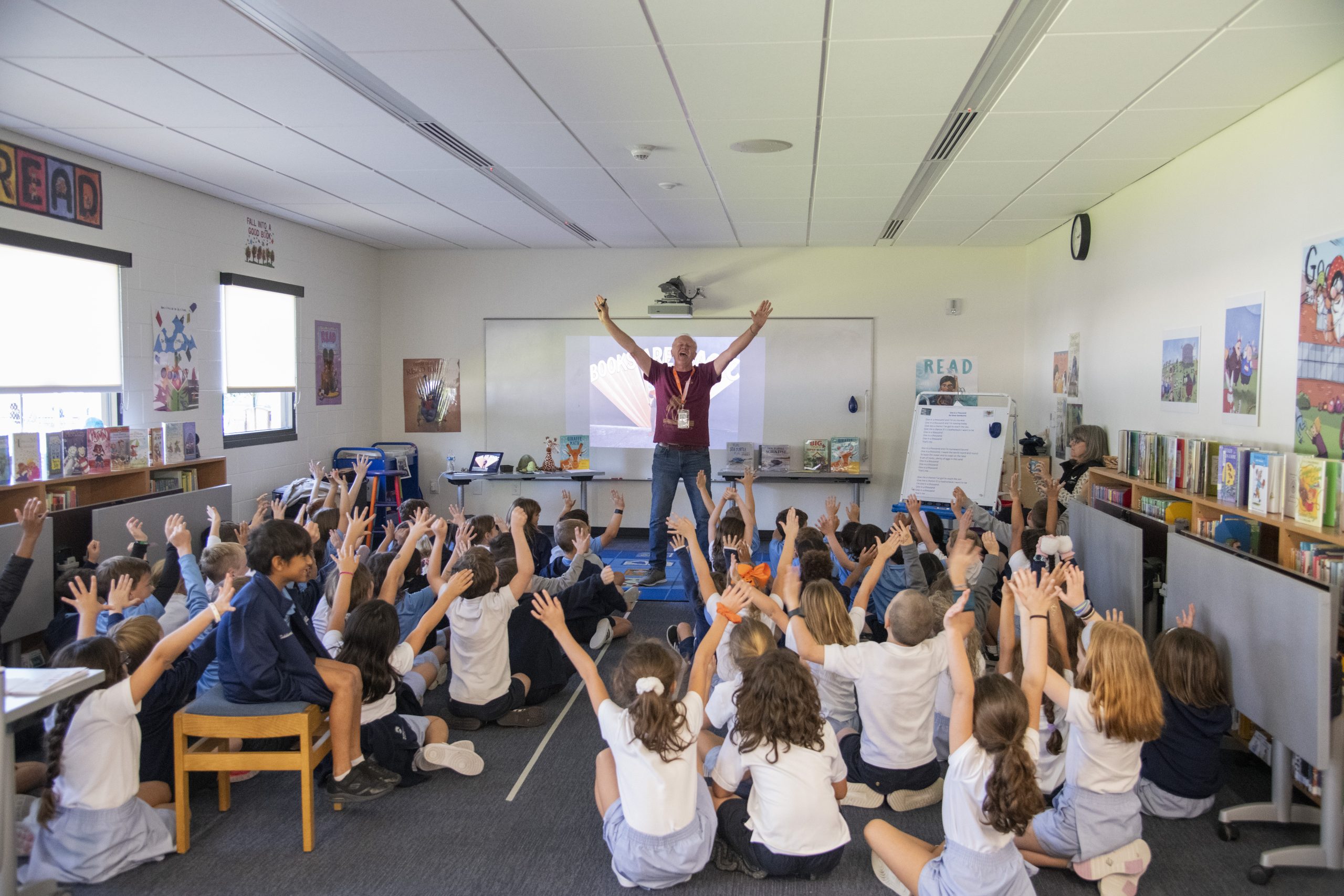 Author Steve Swinburne visited with all Lower Division students and led a writing workshop with fifth grade students. Swinburne explores the natural world by weaving poetry, music, and nonfiction into an engaging and interactive presentation.