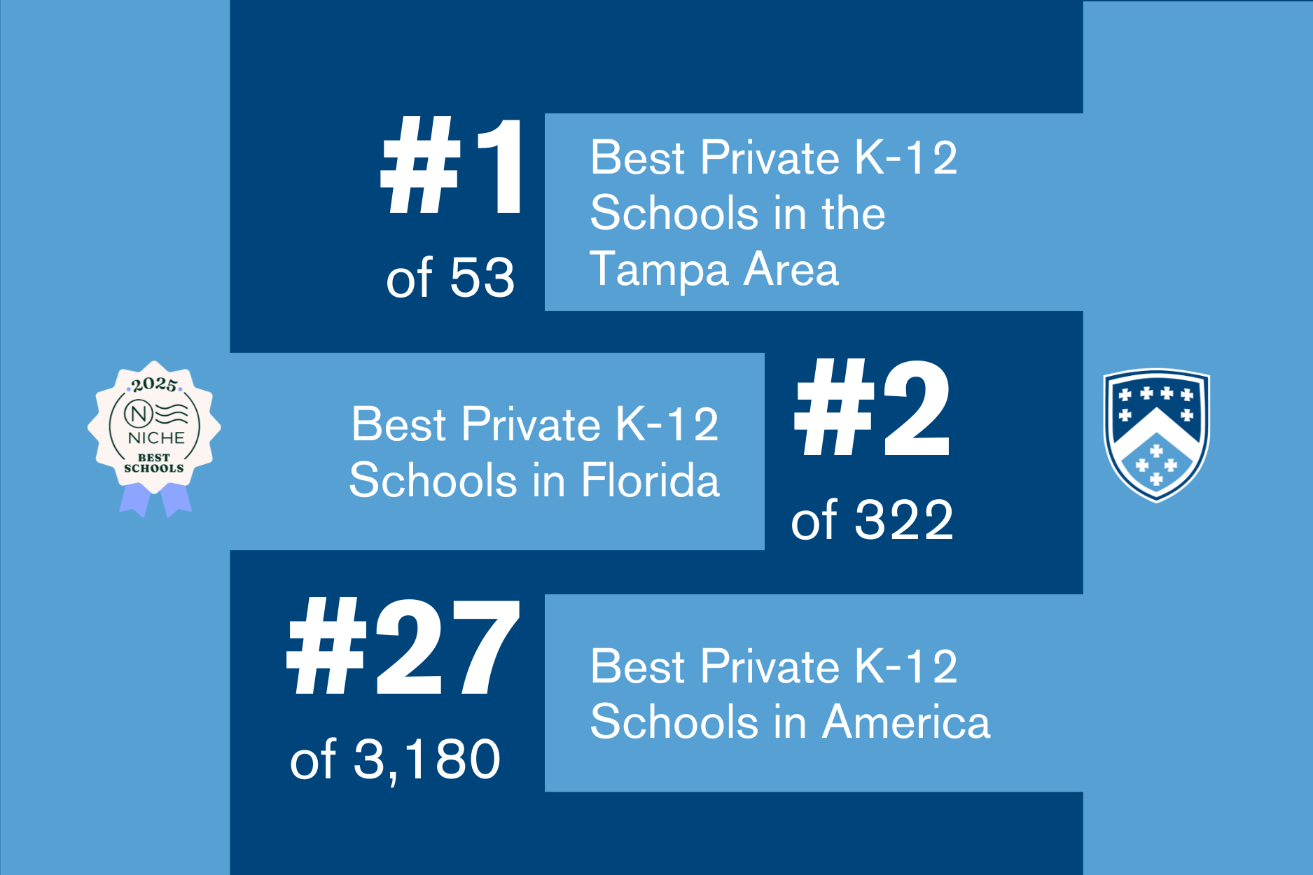 Niche released its 2025 rankings. Berkeley Preparatory School remains the #1 Best Private K-12 School in the Tampa Area (out of 53) and the #2 Best Private K-12 School in Florida (out of 322). Nationally, we have risen 10 places compared to last year, now ranking as the #27 Best Private K-12 School in the U.S. (out of 3,180).