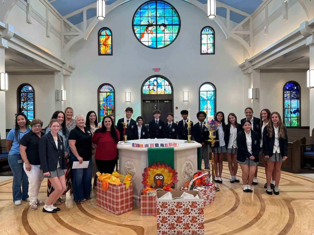 In anticipation of the holiday, Middle Division students, faculty, and staff gathered for a special Thanksgiving Convocation on November 21. The event included musical performances, poetry recitations, prayer, and student reflections, all centered on gratitude. Associate Chaplain Carlene Barbeau then blessed the Bountiful Boxes—festively decorated boxes of food and well wishes collected by students—before they were transported to Esther Street Project, Family Support Services of Pinellas and Pasco County, and Dickenson Elementary School.