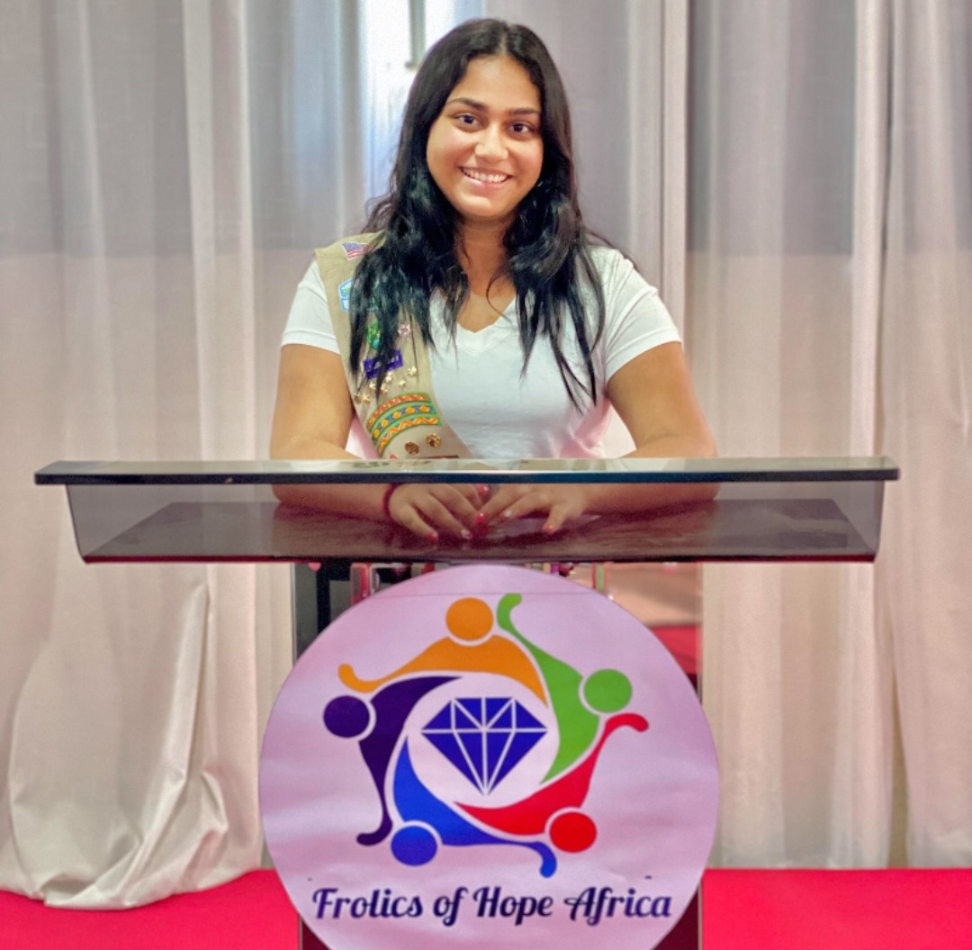 Patel partnered with Frolics of Hope Africa, a nonprofit that focuses on rescuing and rehabbing children who were victims of human trafficking, to assist in building a play therapy center. She used all her birthday money, plus the donations of family and friends, to purchase items for the play therapy center. Then she hand-delivered them in large duffel bags during her family’s trip to Africa. Additionally, she was invited to speak in front of government officials, news organizations, and the public at Frolics of Hope Africa’s conference on human trafficking.